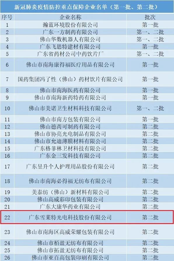 2020-03-19雪萊特列入工信部新冠肺炎疫情防控重點保障企業廣東雪萊特光電科技股份有限公司(以下簡稱“公司”)近日因紫外線殺菌燈被列入國家工業和信息化部第二批新冠肺炎疫情防控重點保障企業名單,同時,公司被佛山市工業和信息化局列入佛山市第一批疫情防控物資重點生產企業名單(佛工信函【2020】240號)。查看詳情 -
